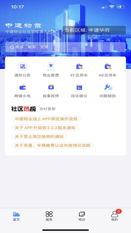 中建物业app是贵州中建筑福物业管理有限公司旗下的物业管理应用平台,app集物业管理、小区动态、社区服务等为一体的物业管理app应用程序,为小区物业提供更加便捷优质服务。 功能特色
