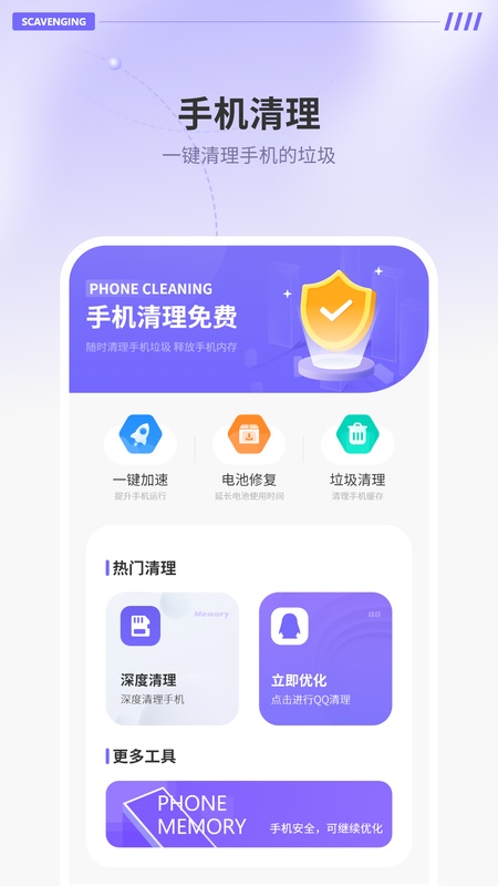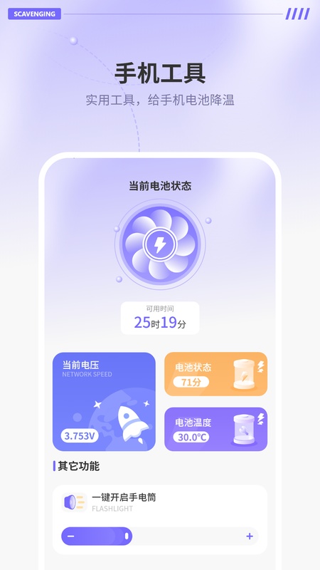 除清理功能外,还附带实用的生活小工具,增加了应用的实用性。