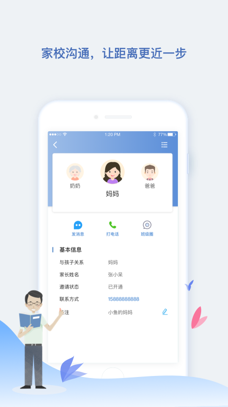 提供家长和老师实名认证的互动平台,实现便捷沟通。