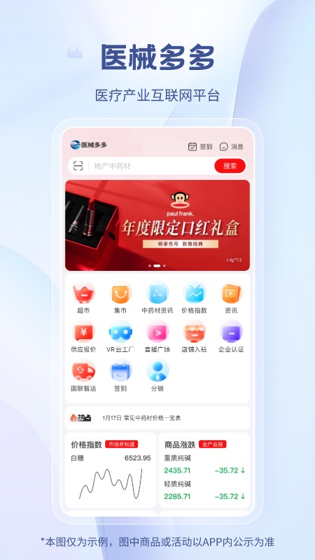 医械多多以医药产业原材料、耗材仪器和成品的交易为主导,为用户提供各类医药相关产品的交易服务。同时,具备供应链集合采购功能,能整合资源实现集中采购。此外,还提供供应链创新服务,推动新技术与医药传统产业深度融合。