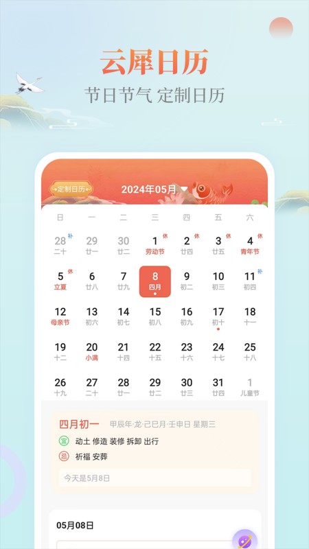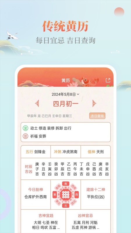 适合中国人的日历农历黄历万年历工具:吉凶宜忌,节日节气,假日查询,择吉日,十二时辰养生,
