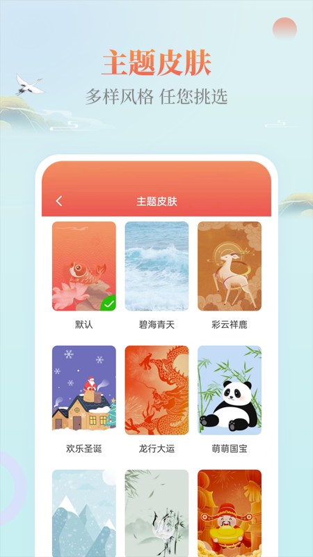 2、新增主题皮肤、节日节气、时辰养生、历史上的今天等功能