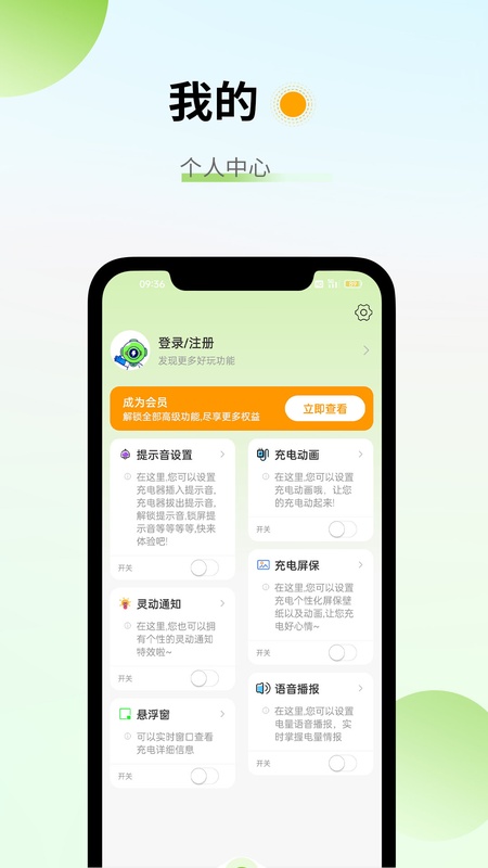 充电提示音:可自定义充电和拔掉充电器时的提示音。