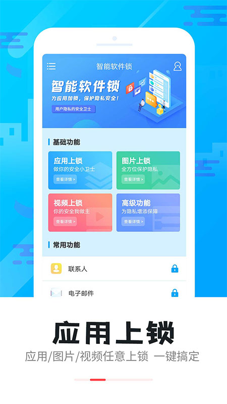 智能软件锁以其卓越的功能和严谨的保护措施,让您在使用手机时安心无忧。心动不如行动,立即下载智能软件锁,为您的隐私加把锁! 软件功能