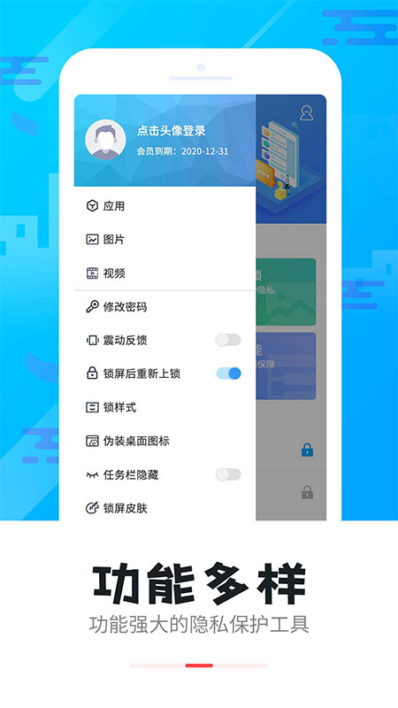 智能软件锁,一款强大的隐私保护应用。为您加密不愿让他人看见的照片、视频和其他APP,确保您的隐私安全无虞。