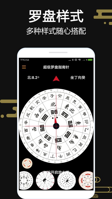 有10种不同的指南针,用户可按喜好选择指南针图获取方位方向;具备两种传统鲁班尺样式,可轻松测量位置布局信息,满足生活中长度测量需求。