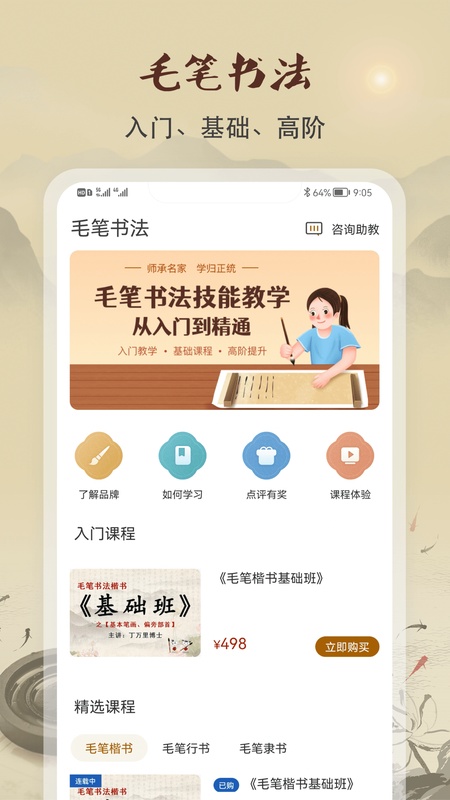 新增毛笔书法课程:毛笔楷书全阶段课程