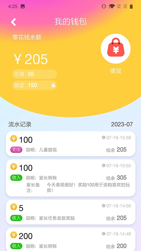 该应用专注于儿童财商及习惯培养,将零花钱管理和任务管理作为核心。分为家长端和儿童端,既方便家长管理孩子零花钱,又能培养孩子的财务意识和习惯。其功能设计有趣,像小期待功能的愿望权益货架,能激发孩子通过完成任务赚取零花钱来实现愿望的积极性。而且购物模式既给予孩子自主选择权,又有家长的引导监管,保障购物的合理性和安全性。