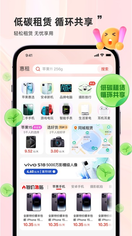 惠租是5000万用户共同选择的正品全品类免押租赁服务平台,提供低碳租赁、循环共享的新消费模式。平台汇集众多商家,品类覆盖广泛,能满足用户一切租赁需求。