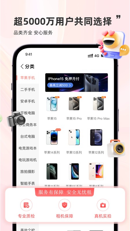 品类全:包括手机租赁,电脑租赁,相机租赁,游戏机租赁,无人机租赁,家电租赁等
