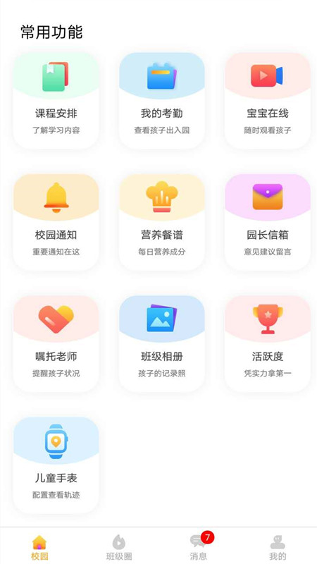 园区圈子、班级圈子可实时分享宝宝动态,区域化环境保证用户隐私安全。还有家长叮嘱、园长信箱,让家长与园方沟通更便捷,能解决困难。公告通知可精准发送信息,确保家长不错过重要事件。