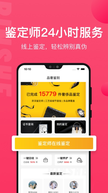 -在线鉴定:通过上传的商品照片,辨别各类奢侈品、轻奢品真伪,出具鉴定证书,用于购物维权;