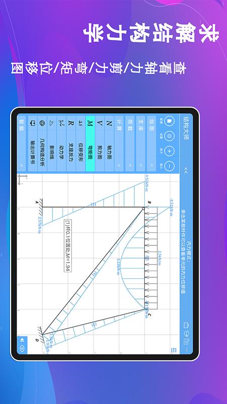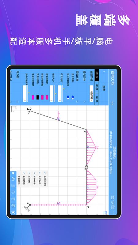 可在平板电脑上进行结构分析,计算结构力学。方便简单,通过指端画线便捷建模,有流畅的体验,让结构输入变得方便。