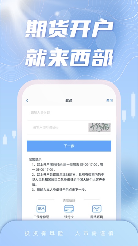 1. 下载西部期货开户APP,建议在WiFi或者3G/4G/5G环境下使用。
