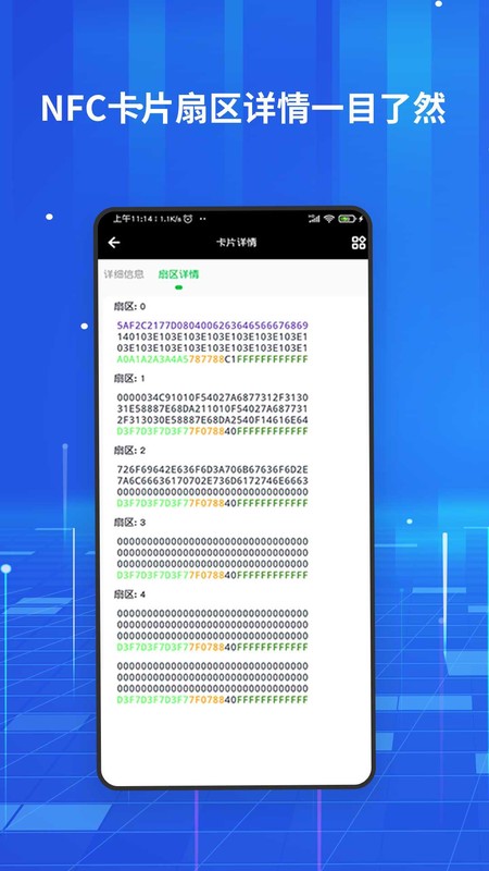1.支持NFC快速读取并存储,支持将NFC内容16进制数据直接转成文本类型展示。