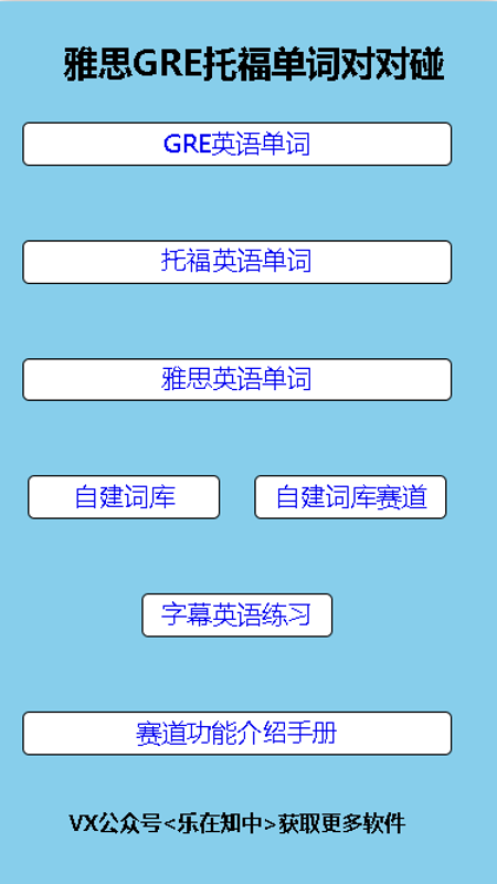1.雅思GRE托福英语单词对对碰软件提供了19条单词记忆练习赛道,包括: