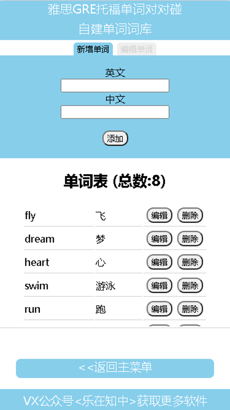 新增功能:1.单词总表和自选单词赛道, 使用者可以自己选择所要练习的单词进行练习.