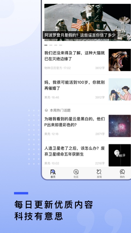 每日更新果壳原创文章,让用户对热点亮点了解得更清楚。