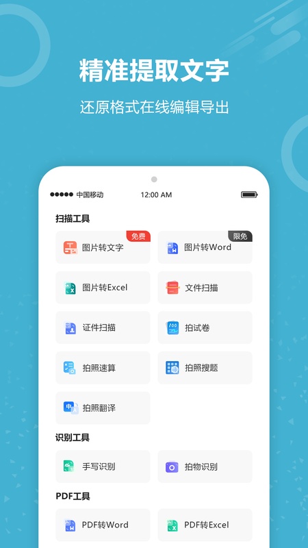 采用人工智能AI技术,能智能扫描图片中的文字,并将提取的文字转换成可编辑的文档,是一款实用的办公软件。