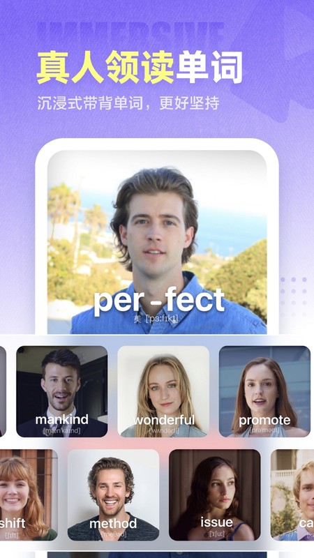 万词王(曾用名完美万词王),万词王真人实景背单词,学好英语,从读准每个单词发音开始。