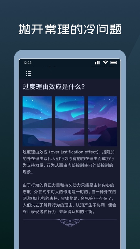 在忙碌生活、快节奏工作、复杂感情等诸多困扰下,用户可通过此App迅速获取解决内心困惑的指引,让用户在众多选择和无奈中找到方向。其独特的冷知识和冷问题,为用户带来别样的体验。