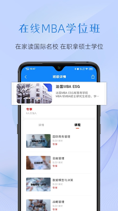 以培养具备全球视野和创新精神的优秀人才为目标,课程设计紧跟国际商业发展趋势,让学员接触到前沿的商业理念和管理方法。依托高校合作资源,学员有机会与知名教授和行业专家进行交流学习,拓宽人脉资源和职业发展渠道。