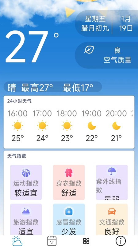 关爱版本天气日历,省心!都看大字版可以帮你识别近期天气,更有电子日历。