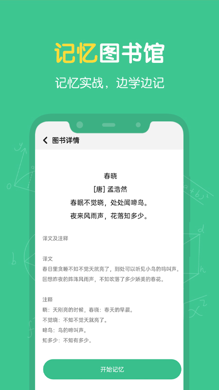 该APP能帮助孩子快速提升记忆力,如1分钟记住圆周率50位、2分钟记住1首古诗词、3分钟记忆随机词汇30个。动画课程 + 趣味训练的模式更适合孩子,解放家长。定期测评让学习效果可视化,家长和孩子能清楚看到进步。大脑训练场可充分激发孩子大脑潜能,记忆图书馆方便孩子学习课内课外知识。