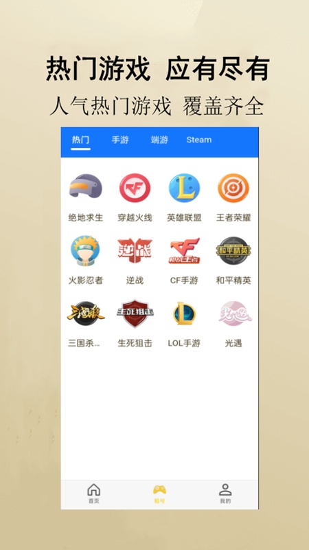 覆盖游戏:王者荣耀、火影忍者、使命召唤手游、和平精英、CF、逆战、英雄联盟、三国杀、原神、光遇、CF手游、LOL手游、第五人格等百款热门手游端游。