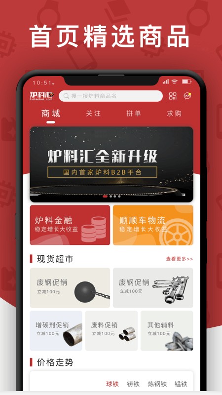 炉料汇是国内成立最早的专注炉料行业的全产业链B2B电子商务现货交易平台,现已成为炉料、铸铁行业互联网领军企业,同时也是国内规模最大的炉料批发、零售平台。炉料汇APP为方便炉料行业提供方便快捷的交易体验。 功能特色