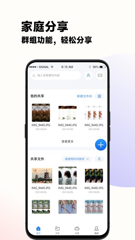 购买空间,成为群主即可自由邀请家庭成员,群组专属共享空间,与家人分享你生活中点点滴滴的细节,全家共享一朵云。 软件功能