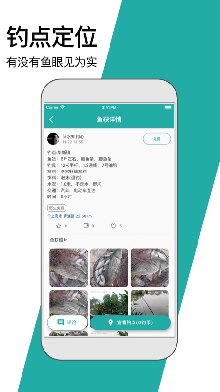 鱼情好不好,看看鱼获照片就知道,精准的钓点定位,一键导航,轻松找到钓点钓大鱼。