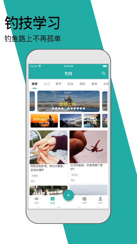 学习钓鱼大神的钓技及配方,让自己在钓鱼路上不再孤单,发布钓技,让自己成为钓鱼大神。