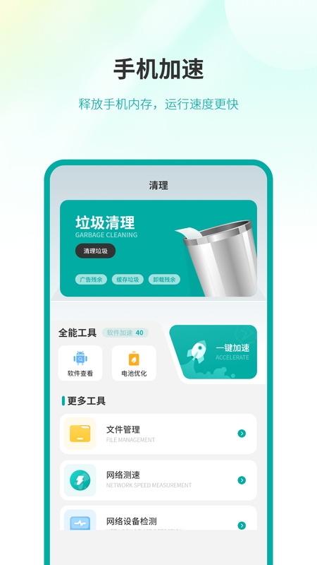 【手机加速】 手机一键加速,告别卡顿 应用功能