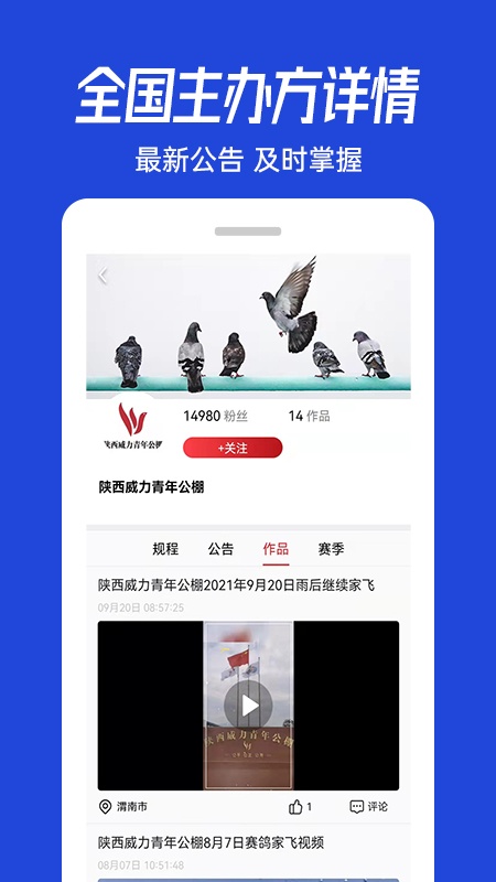 更有语音功能协助搜索,一键查询天下赛鸽,一目了然鸽界动态! 软件功能
