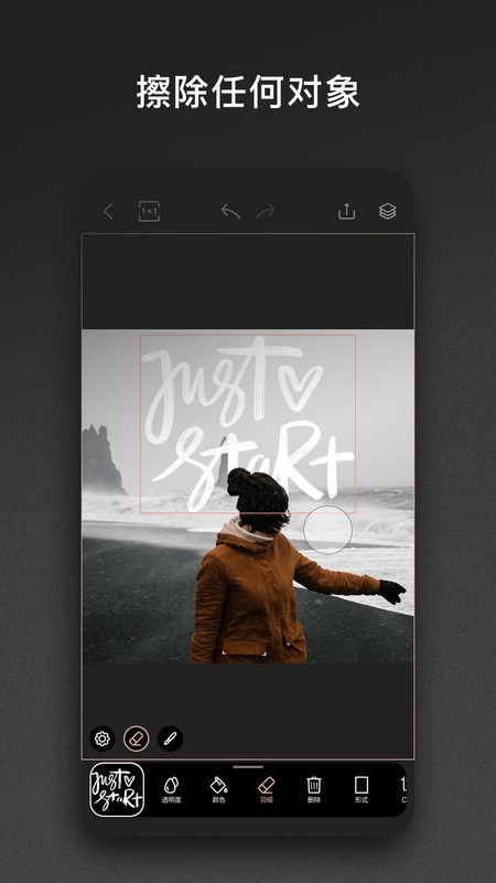 能在应用程序中添加png格式的图片、书法和题词,可擦掉照片、贴图和以字体键入的文本,交换图层位置,在对象后面放置题词,对象可复制并水平和垂直反射。支持视频,可创建拼版视频,从视频中擦掉背景,向视频添加贴图、图片、书法和题词。具有操作取消功能,最多记住50个最近操作。