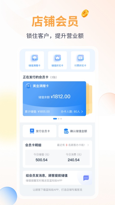 蓝知APP为商户提供多种实用功能。在收款经营方面,支持多样收款方式,能让商户对每日营收一目了然。异业联盟功能可实现不同门店间的客流共享,帮助门店扩大新客来源。权益营销借助私域流量,有助于商户做大做强回头客群。会员管理功能通过发卡锁客,能有效防止会员流失。