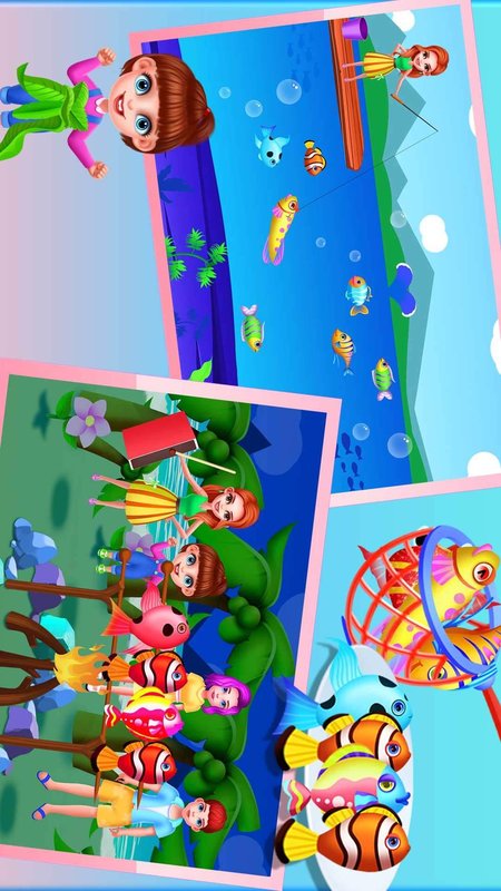玩家进入游戏后,操控角色开启荒岛旅行。先让妈妈和妹妹进行沙雕制作,完成后进入午餐时间,控制妈妈钓鱼并做烤鱼。之后妹妹裙子划破,操作妈妈用花朵和叶子做裙子。要离开时爸爸检修游艇发现问题,接着让妈妈和姐姐发SOS求救信号,等待救援。最后完成垃圾清理,跟随救生船离开小岛。