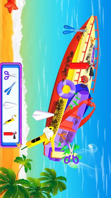 玩家要面对爸爸检修游艇发现引擎坏了这一突发状况,增加游戏的挑战性。妈妈和姐姐在岛上发SOS求救信号的情节,带来紧张刺激的救援体验。一家人将岛上垃圾打扫干净后被救生船救走,融入环保理念,使游戏更具教育意义。