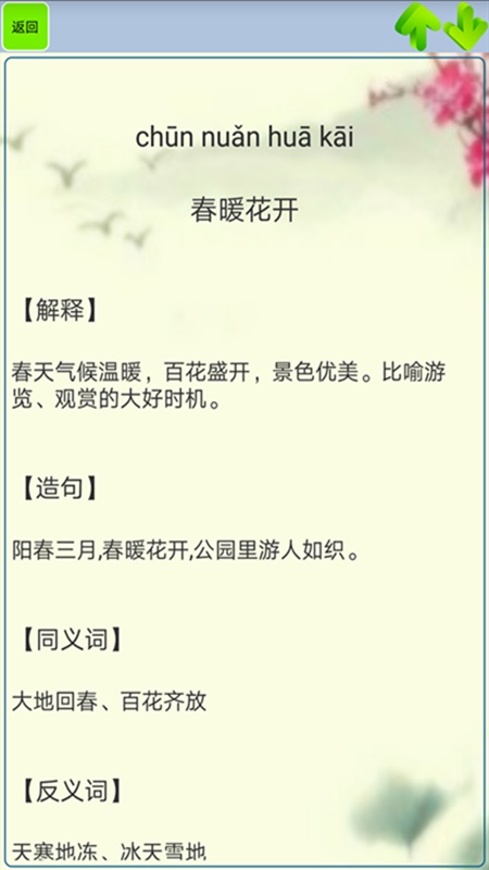 该软件具备学成语功能,为每个成语提供拼音、解释、造句、同义词、反义词、故事和出处等内容。还设有成语默写、填空和猜词功能,可帮助用户记忆和复习成语。此外,软件提供了成语查询功能,方便用户查找相关成语。