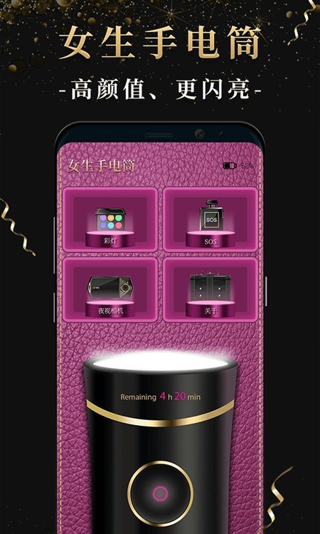 其UI全新设计,华丽且能满足女神挑剔眼光与独特品味。设计独特、风格完美,完全免费,操作简单,一开即亮,还省电省内存。适配超过1000款机型,覆盖度广,能充分发挥闪光灯和屏幕的作用。