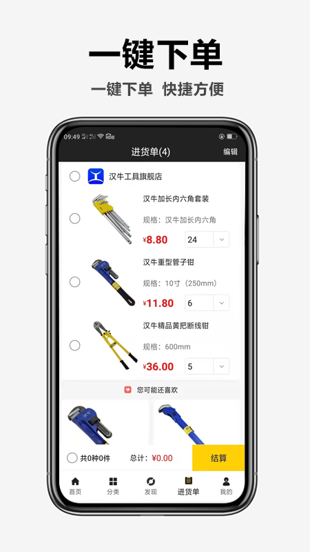 汉牛工业品APP是专注于工业品采购批发配送售后一体化的服务平台,为工业品经销商提供一站式采购服务。平台产品全面覆盖工业品各行业,涵盖几十万种工业产品,现有工业行业产品22大类,能一站式满足经销商各种采购需求。经销商可在平台一键下单,所采购商品能快捷安全配送到家。同时,平台具备完善的售前、售中、售后服务体系,可降低经销商采购成本、时间成本和售后成本。