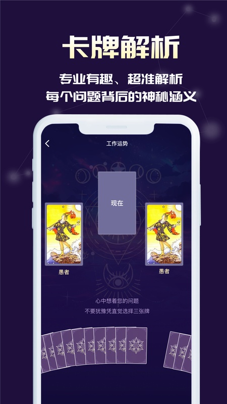如果你对塔罗牌感兴趣,该APP的丰富塔罗牌功能,从牌阵操作到专业解读,再到卡牌解析,能让你深入体验塔罗牌的神秘世界,为你的生活、情感、事业等方面提供指引和启示。