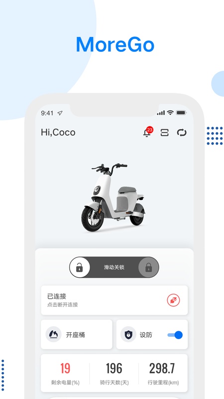 通过 MoreGo,您可以远程控制设备的开关锁、灯光等功能,随时随地管理您的出行工具。