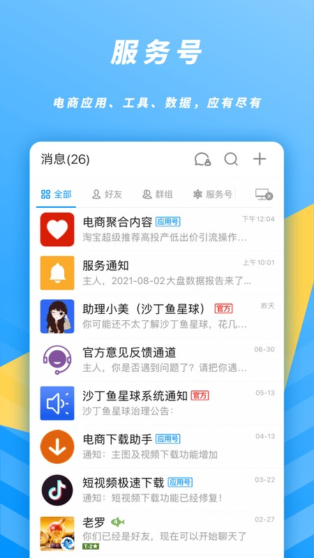 聊天记录方面,实现四端全部自动同步,方便商家随时随地查看。好友名片展示电商认证信息,信息公开透明。支持好友送礼,可在群聊和私聊中进行。群聊功能强大,继承QQ群管功能,包括支持管理员全员禁言、对某个成员禁言、对进群进行审核、支持群聊添加机器人以及支持进群看历史记录。
