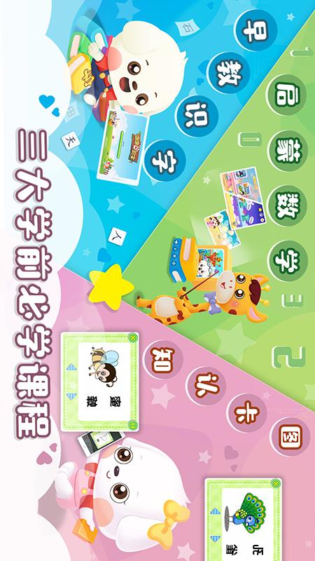 包含早教识字,有 1200 个常用汉字、1000 多个识字儿童动画、230 多个识字游戏等,通过科学流程高效学习,让孩子在情景故事中体验认字乐趣;趣味数学全面启蒙,涵盖四大知识板块,通过游戏互动让孩子掌握多种数学技能;还有英语童话剧和儿歌,14 个英语绘本激发兴趣培养语感,30 首儿歌认知实物启发乐感。