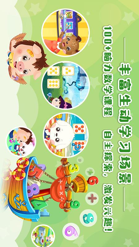 全面启蒙儿童数学基础,数学与计算、排序与比较、图形空间时间、逻辑思维训练,4大知识板块全面覆盖,120节课程完美衔接,350个游戏寓教于乐,1000个练习,让孩子在有趣的游戏互动下,激发探索兴趣---学习数学知识---练习巩固加强,从而形成一套启蒙数学逻辑,让孩子掌握:数量对应、比较、分类、序列、时间、形状、空间方位、加减运算,数学口算等数学技能,培养孩子的数学思维、观察比较、分析辨别、反应能力,解决问题的能力,感受有趣生活!