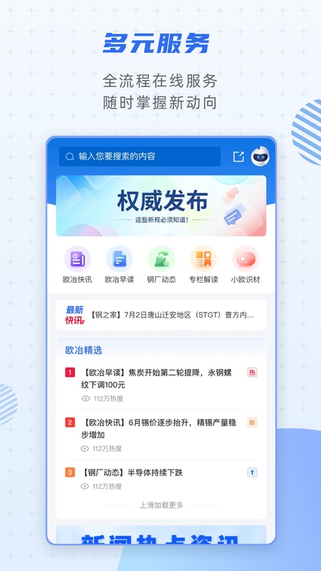 欧冶云商APP以客户为中心,秉持“共建、共享、值得信赖”的发展理念。它将钢铁产业的多种服务集于一体,为钢铁产业链上的各方提供了极大的便利。无论是钢铁生产企业、贸易商还是下游用户,都能在该平台上找到适合自己的服务。通过整合资源,降低了各方的交易成本,提高了产业效率。其丰富的功能和可靠的服务,使其成为钢铁产业人士不可或缺的工具。