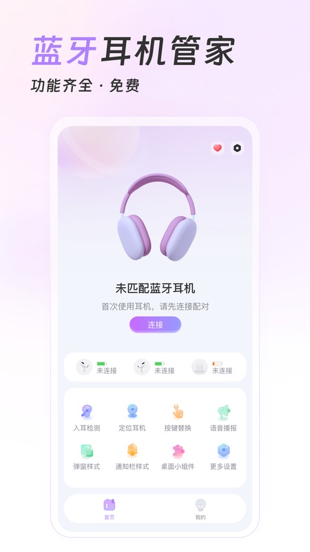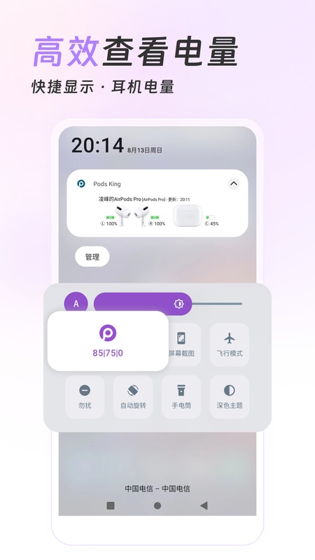 -支持快捷配对耳机,智能识别耳机型号,精准显示蓝牙耳机的当前电量