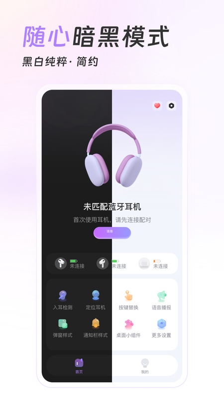 -支持在桌面小组件,通知栏,状态栏中都可以查看蓝牙耳机电量